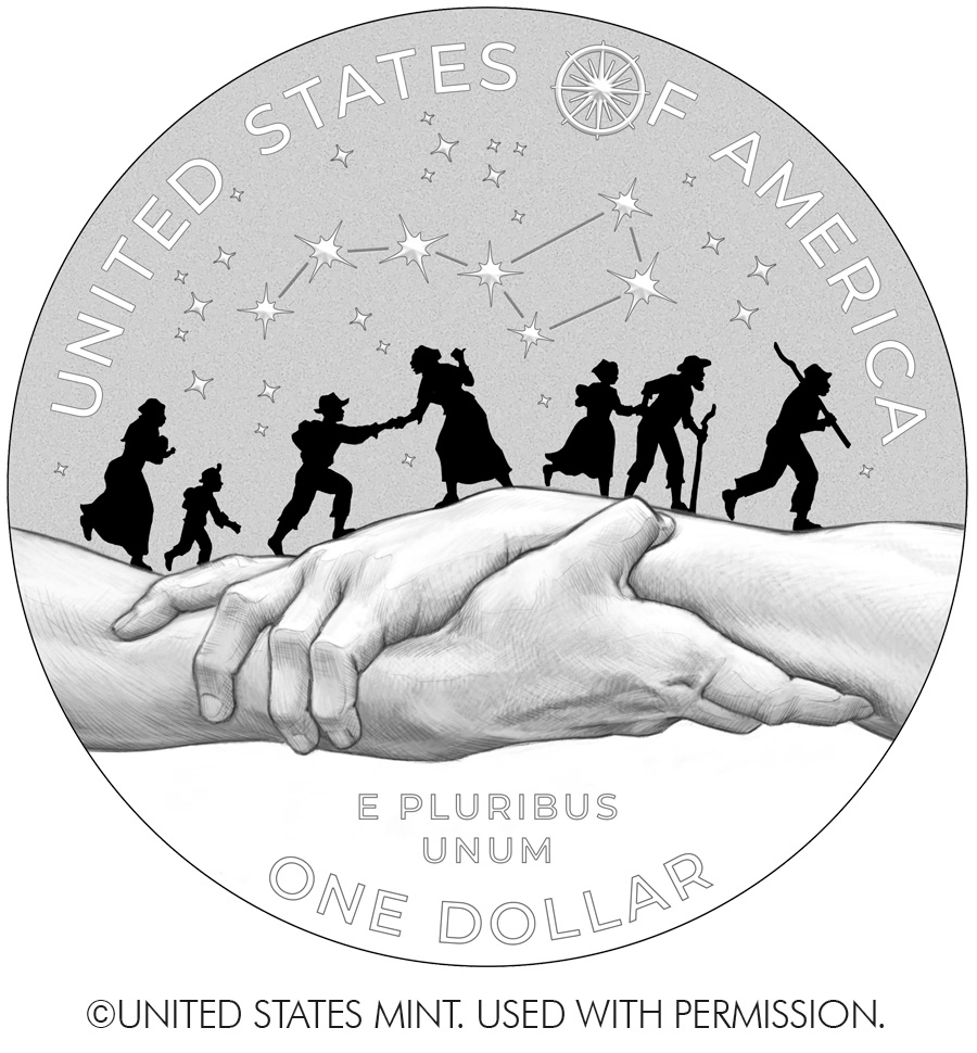 The American Innovation $1 Coin representing Ohio honors the Underground Railroad. The Underground Railroad was a loose and decentralized network of individuals, families, friends, and churches that covertly helped slaves escape to freedom. The National Park Service recognizes over a dozen routes through Ohio which stand as monuments to fleeing slaves and those who helped them along their way.