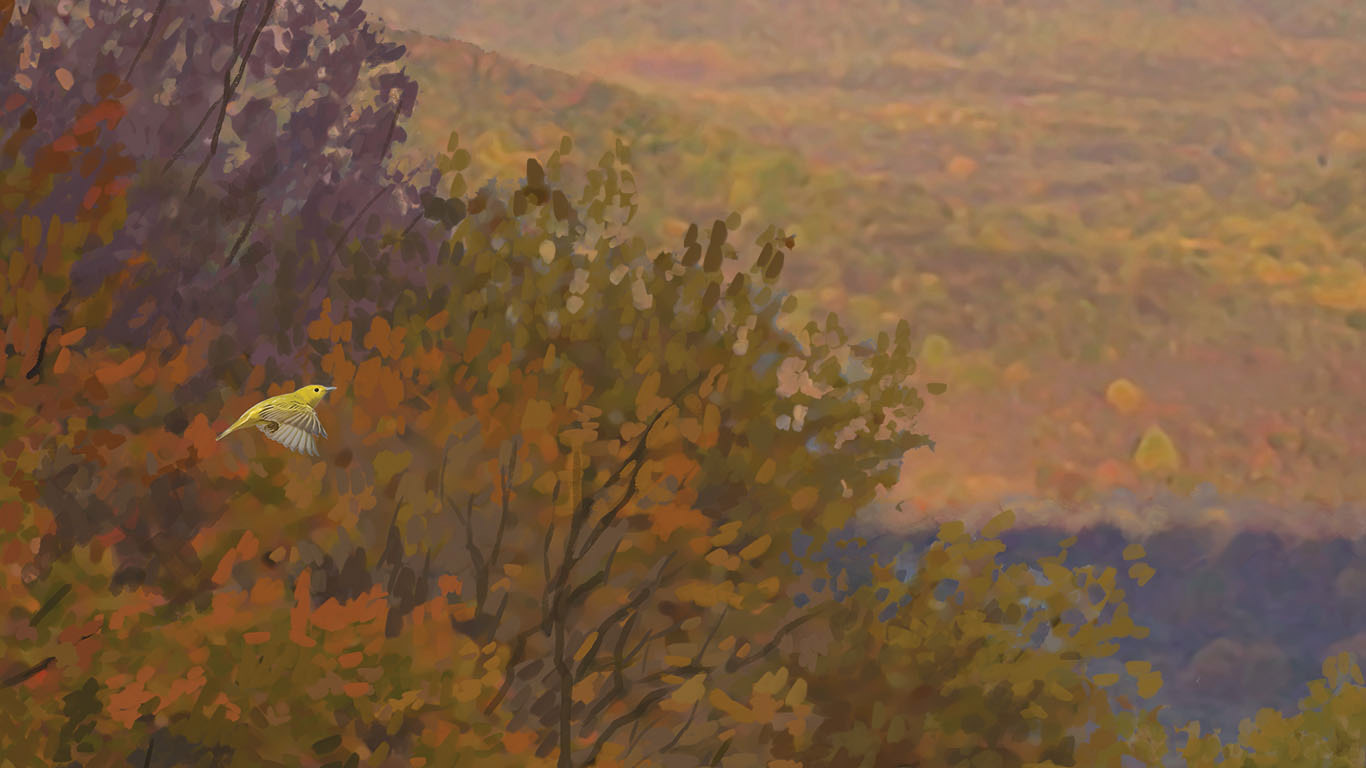 This piece of the exhibit highlights a well-known vista visitors can hike to--Baughman Rock. The diorama was designed to feature a simple drop-off rock foreground and a digitally painted, traditionally augmented fully-coved background mural. Images below show some of the diorama shell with painted sky and detail shots of the original digital mural. (©Blue Rhino Studio)