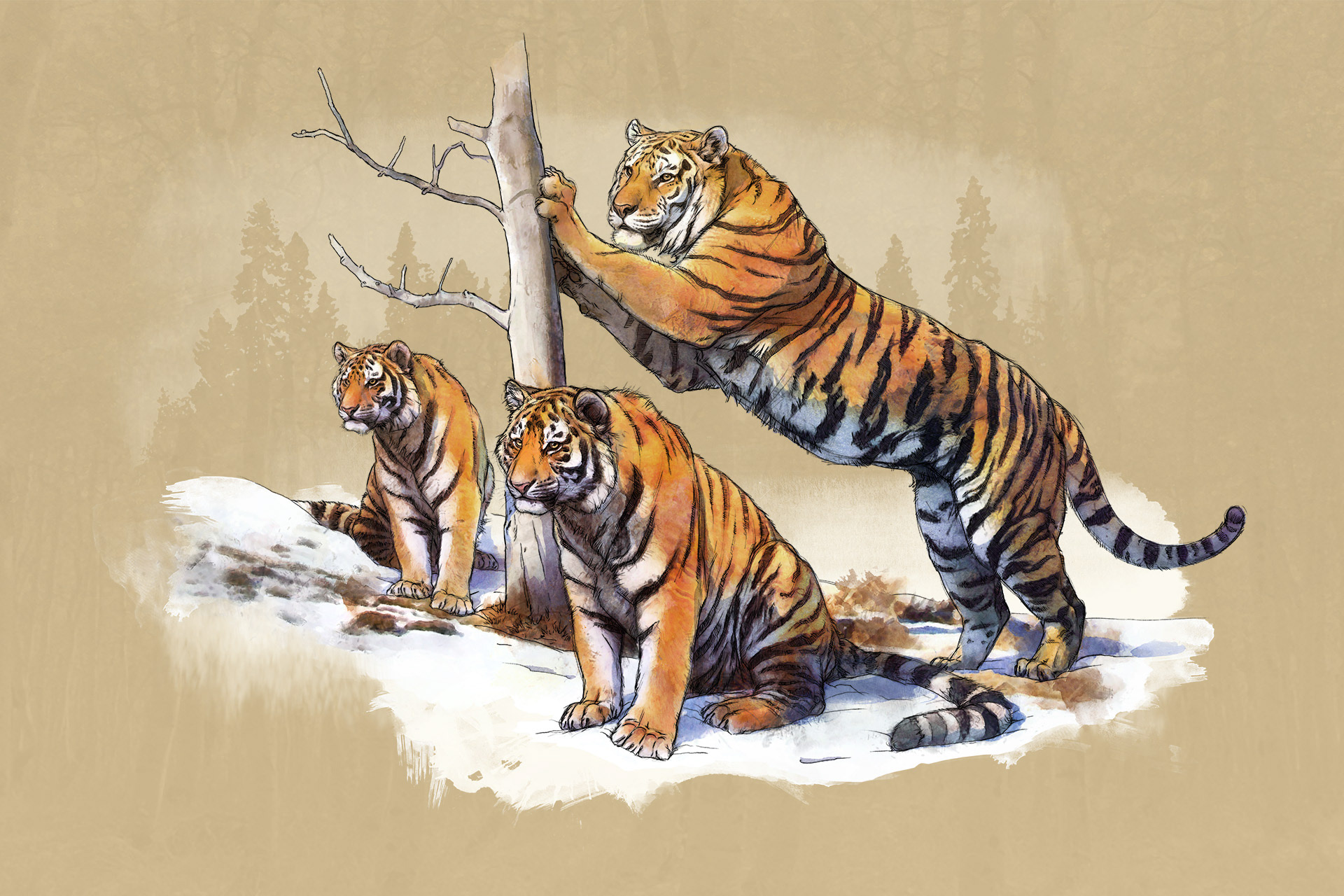 In re-imagining the graphic content for the Amur Tiger Base Camp, the Minnesota Zoo wanted to give both an overview of the Amur Tiger's adaptations as well as it's conservation status. The Base Camp features a number of panels describing various behaviors like scratch and spray-marking of territory, as well as a map showing all 9 subspecies of tiger, both living and extinct. I provided digital pen-and-watercolor styled illustrations for each interpretive panel. (©Beth Zaiken)