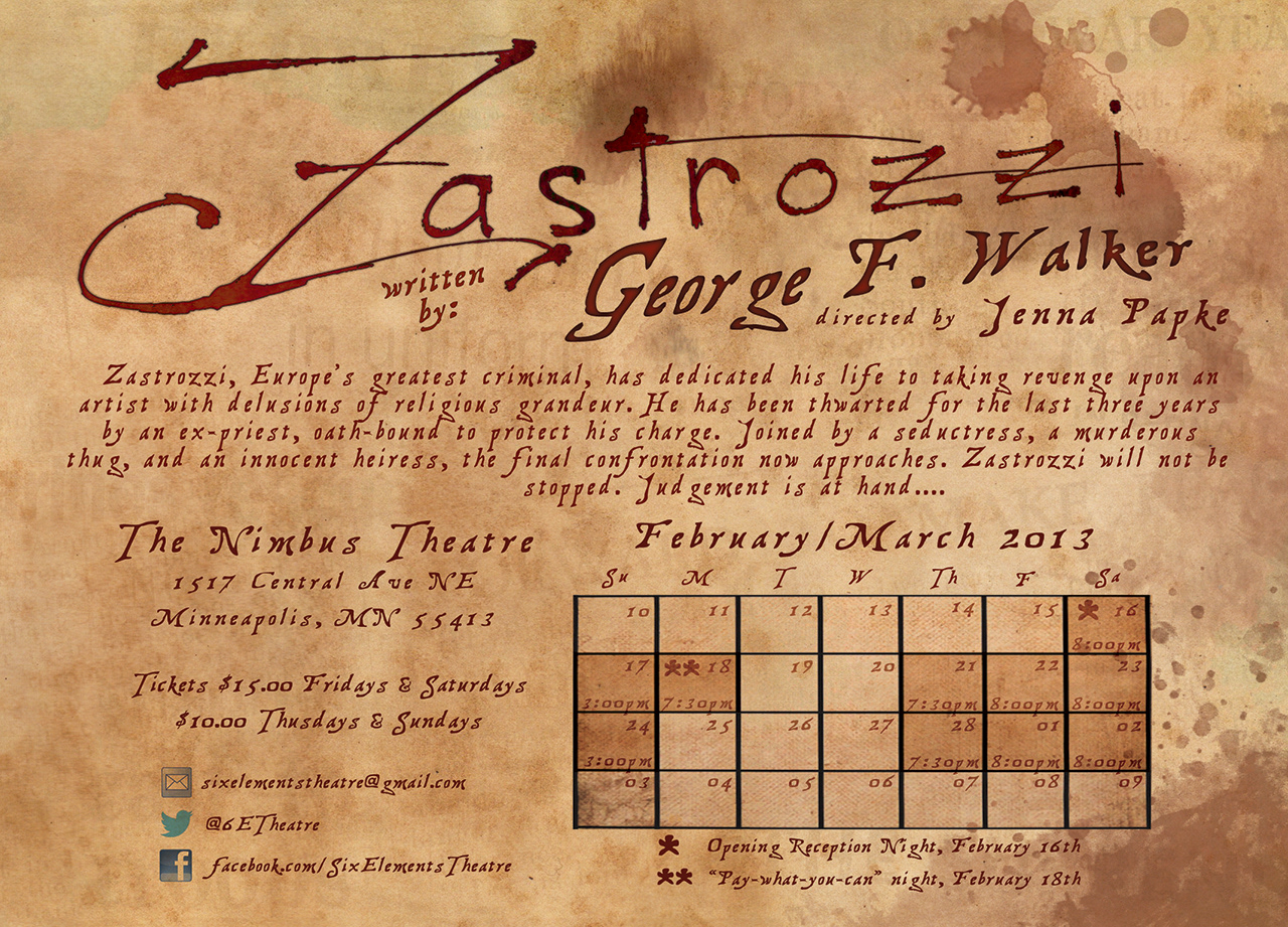 Zastrozzi Postcard | 6 Elements Theater Company